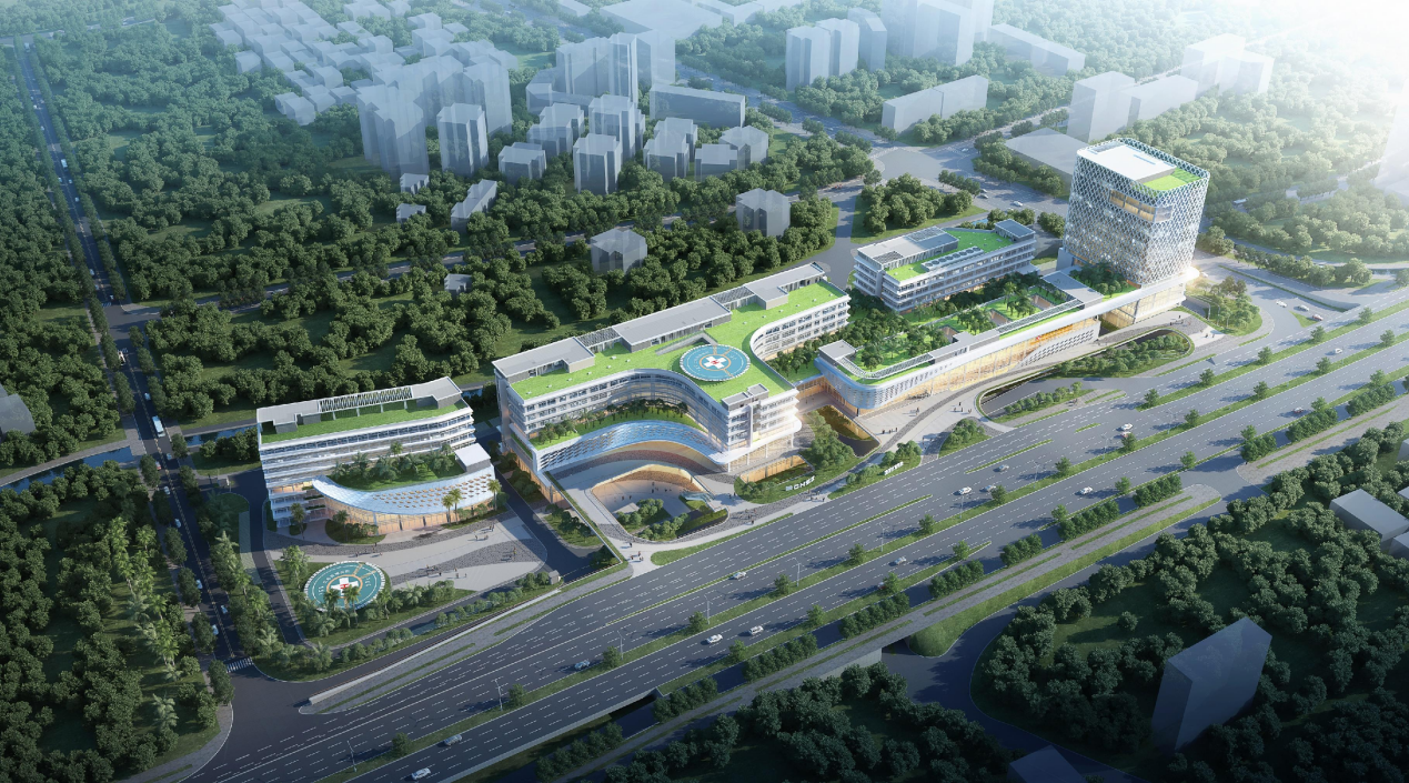 項目毗鄰海港及深圳國際機場,具有特殊的地理優(yōu)勢,建筑面積約20萬平方米,最大建筑高度達63.55米,設置床位800張,門診預設25個臨床科室,可滿足日門診量3000人次以上、年門診量100萬人次以上需求。
