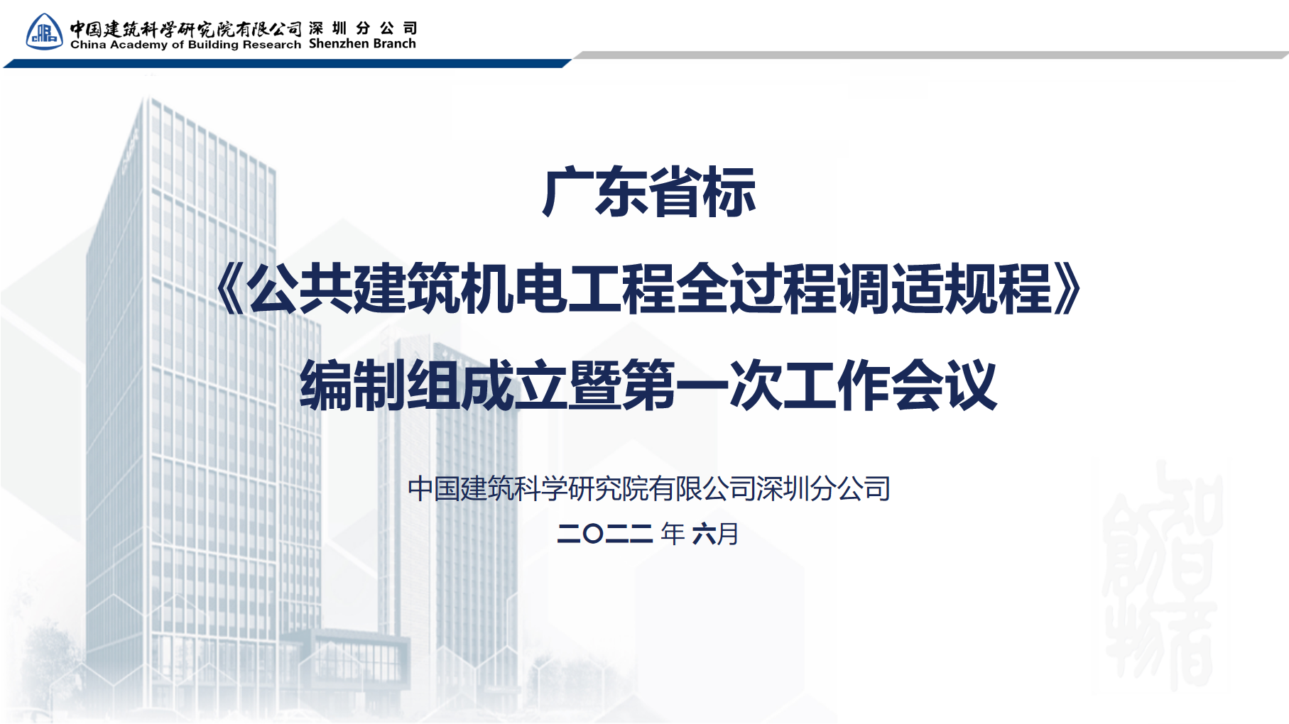 隨后,《調適規(guī)程》編制組召開了第一次工作會議。中國建研院深圳分公司對《調適規(guī)程》編制背景、工作基礎、大綱、分工和計劃等進行了詳細匯報,與會專家就上述內容進行了廣泛深入的討論并達成一致意見。根據(jù)工作計劃,編制組預計于2022年10月完成征求意見稿編制,預計于2023年3月提交報批稿。