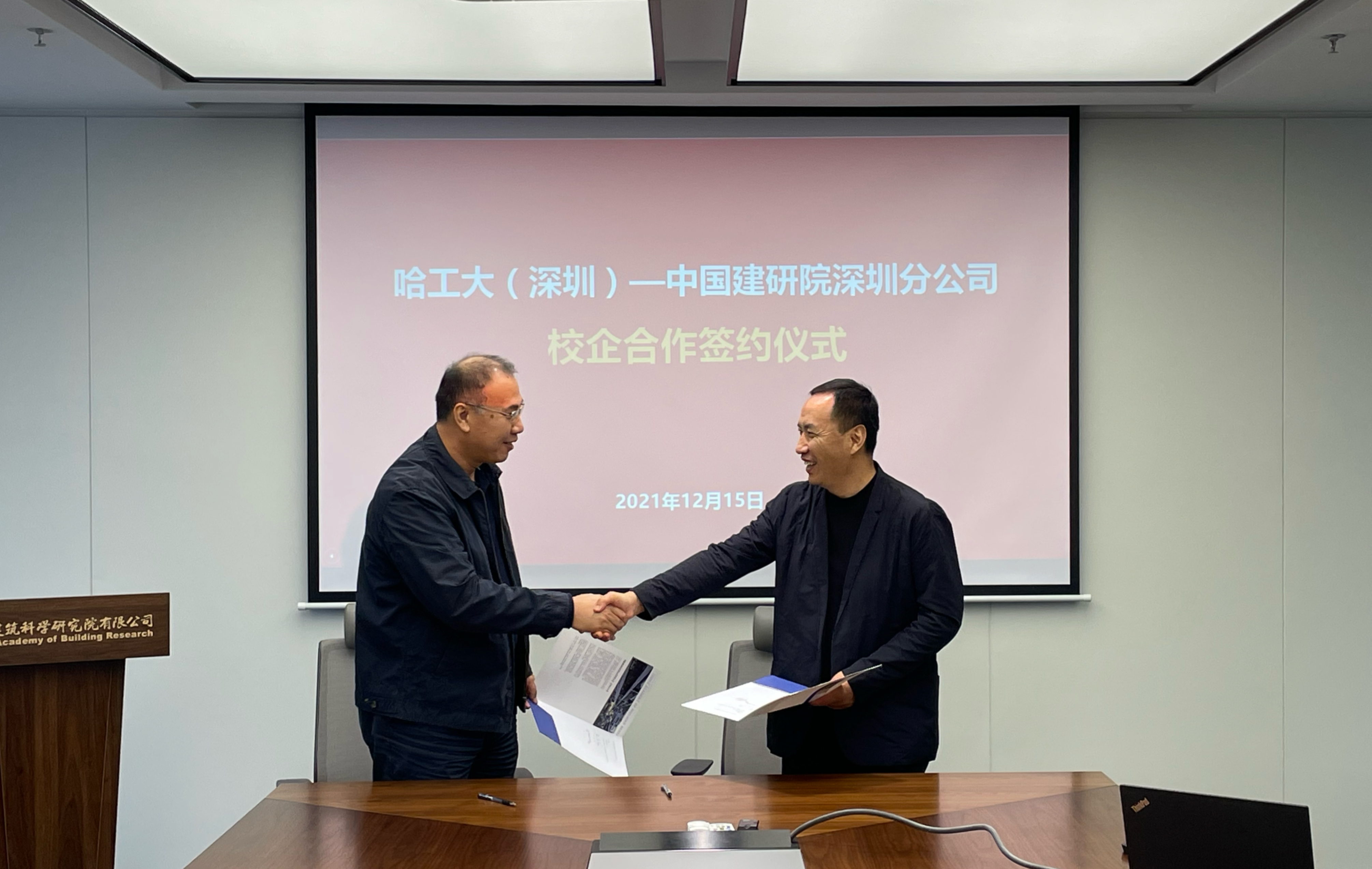 由中國(guó)建研院深圳分公司和哈爾濱工業(yè)大學(xué)(深圳)共同舉辦的“哈工大(深圳)-中國(guó)建研院深圳分公司”校企合作簽約儀式在中國(guó)建研院深圳分公司舉行,深圳分公司總經(jīng)理張輝、哈工大(深圳)建筑學(xué)院執(zhí)行院長(zhǎng)宋聚生及雙方代表共10人出席了此次會(huì)議,會(huì)議由深圳分公司運(yùn)營(yíng)管理部副主任杜巍巍主持。
