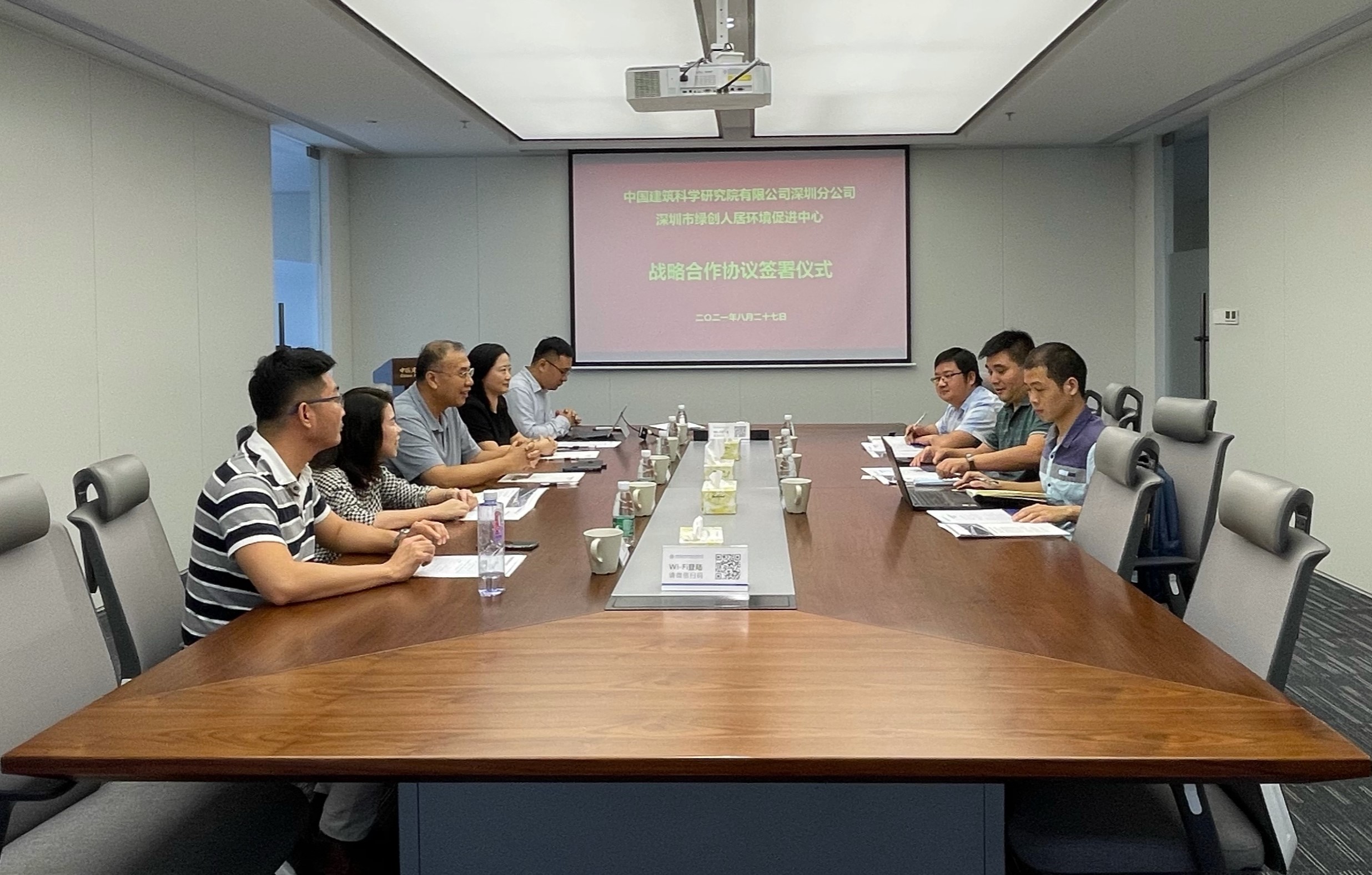 8月27日下午,中國(guó)建研院深圳分公司與深圳市綠創(chuàng)人居環(huán)境促進(jìn)中心在深簽署戰(zhàn)略合作協(xié)議,中國(guó)建研院深圳分公司總經(jīng)理張輝與深圳市綠創(chuàng)人居環(huán)境促進(jìn)中心主任鐘如仕代表雙方簽署協(xié)議。中國(guó)建研院深圳分公司副總經(jīng)理羅紅、科技發(fā)展中心主任董雙燕、科技發(fā)展中心技術(shù)總監(jiān)李鑫、專業(yè)總工程師逄秀峰,深圳市綠創(chuàng)人居環(huán)境促進(jìn)中心韓想運(yùn)、董華佳出席簽約儀式。