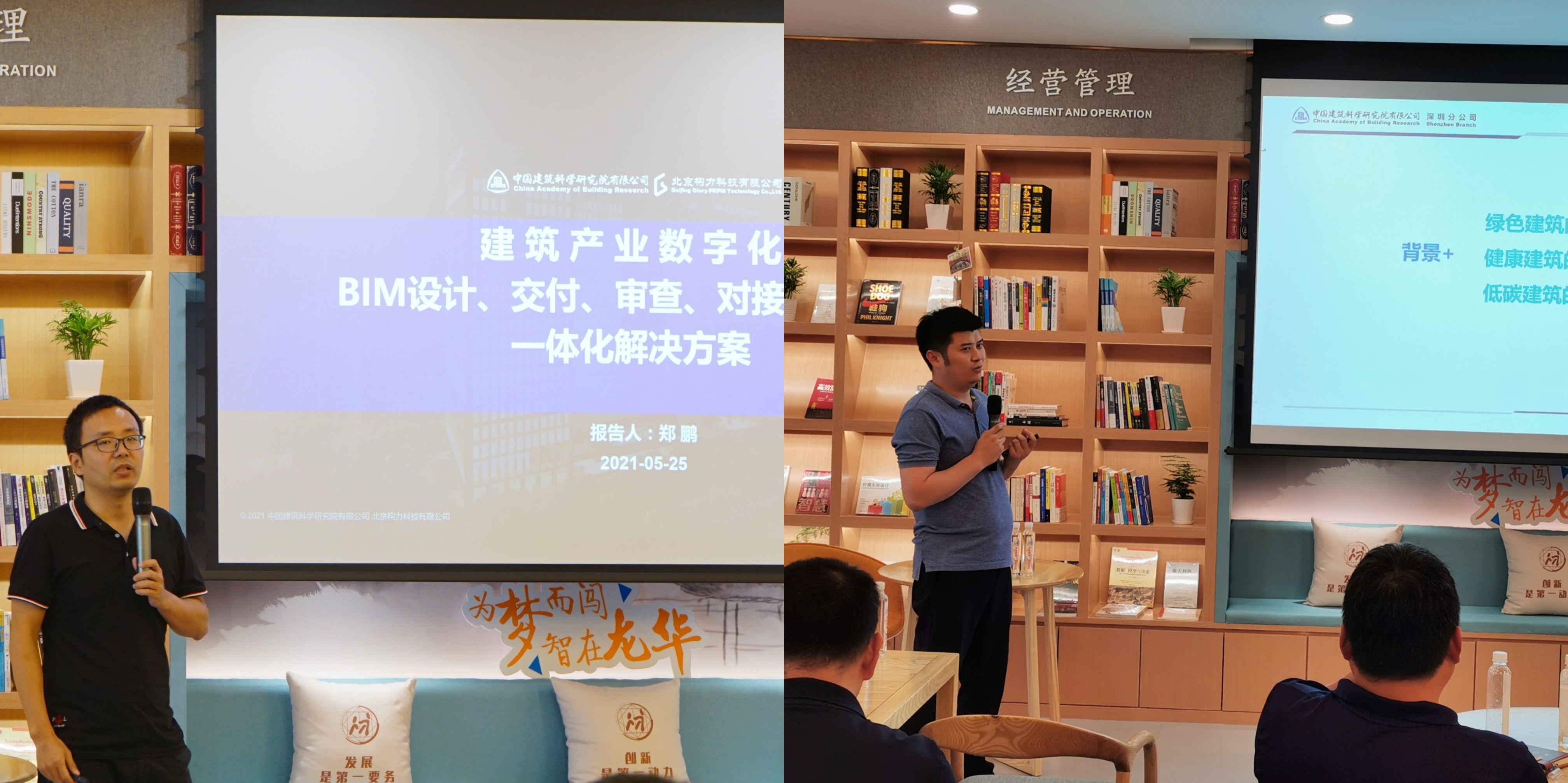 隨后,由中國建研院北京構力科技有限公司深圳分公司總經(jīng)理鄭鵬和中國建研院深圳分公司綠色建筑與節(jié)能研究所所長施世濤分別為大家作《建筑產(chǎn)業(yè)數(shù)字化》和《綠色、健康、低碳建筑發(fā)展》的專題講座。與會人員對講座內(nèi)容展開了交流研討。