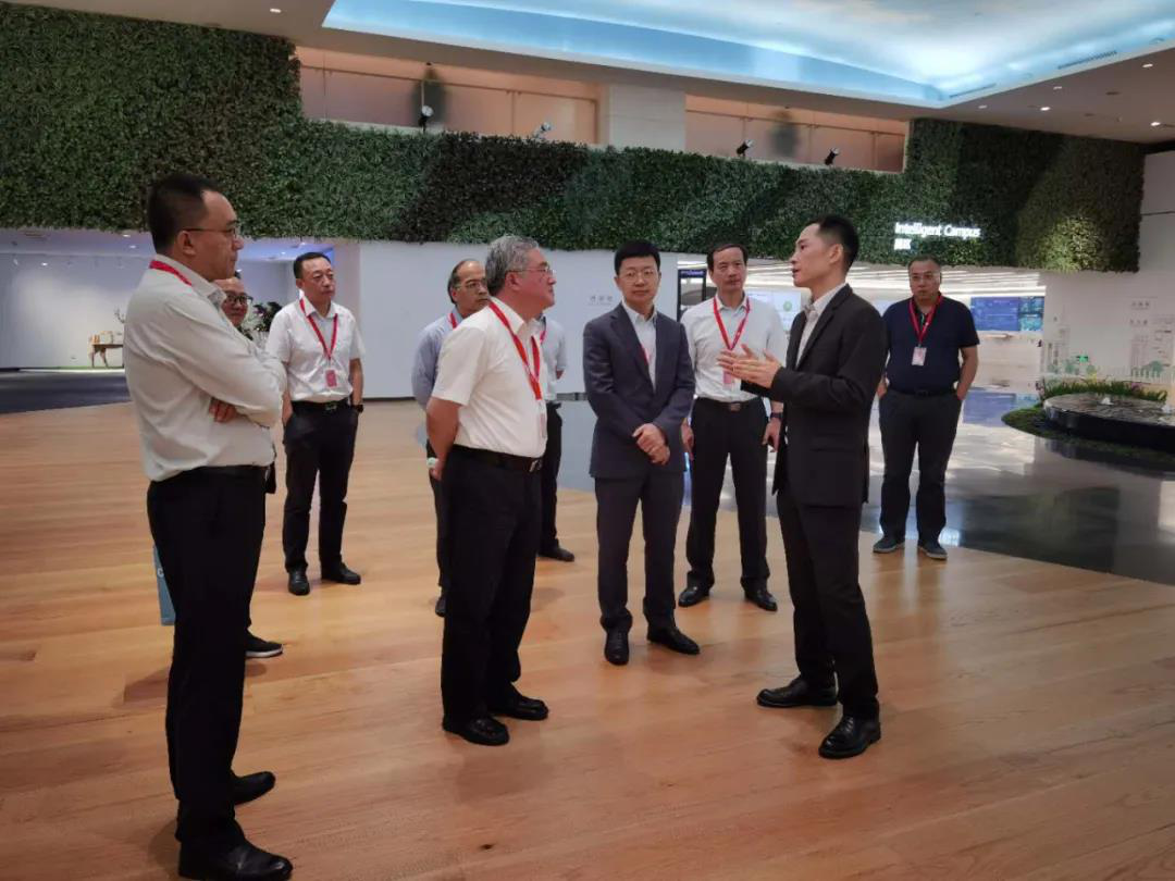 中國建研院副總經(jīng)理范圣權(quán)、紀(jì)委書記胡振金,華為大企業(yè)業(yè)務(wù)部總裁王輝、智慧園區(qū)業(yè)務(wù)部CTO王結(jié)紅,以及雙方相關(guān)業(yè)務(wù)部門負(fù)責(zé)人出席了參觀會(huì)談。