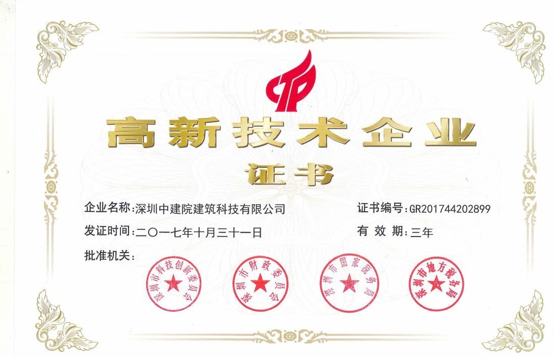 日前,全國高新技術企業(yè)認定管理工作領導小組辦公室公布了2017年深圳市第二批國家高新技術企業(yè)名單,深圳中建院建筑科技有限公司(以下簡稱“深圳中建院”)通過嚴格評審,榮獲國家高新技術企業(yè)認定(證書編號:GR201744202899)。