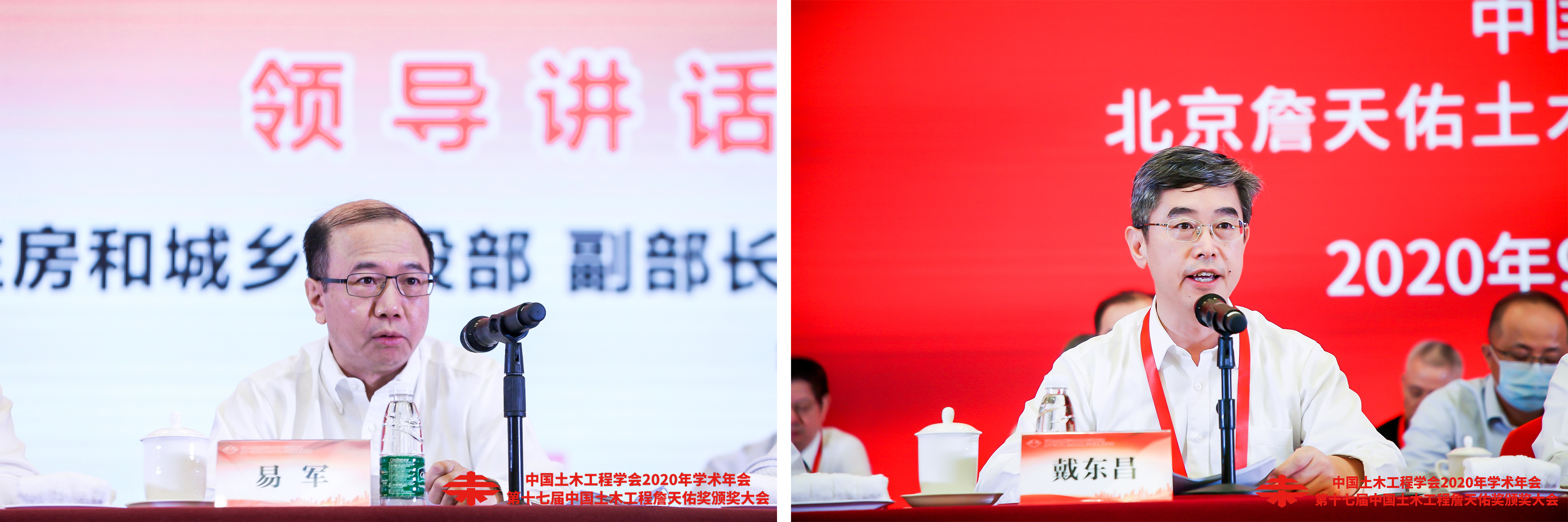 住房和城鄉(xiāng)建設(shè)部副部長易軍代表住房和城鄉(xiāng)建設(shè)部對大會的召開表示祝賀。易部長圍繞聚焦新基建,助力建筑業(yè)高質(zhì)量發(fā)展;強化創(chuàng)新驅(qū)動,加快創(chuàng)新成果的轉(zhuǎn)化與應(yīng)用;增強質(zhì)量意識,確保工程質(zhì)量安全等方面提出了三點要求,易部長希望中國土木工程學(xué)會繼續(xù)搭建好學(xué)術(shù)交流平臺,不斷開創(chuàng)建筑業(yè)高質(zhì)量發(fā)展新局面。