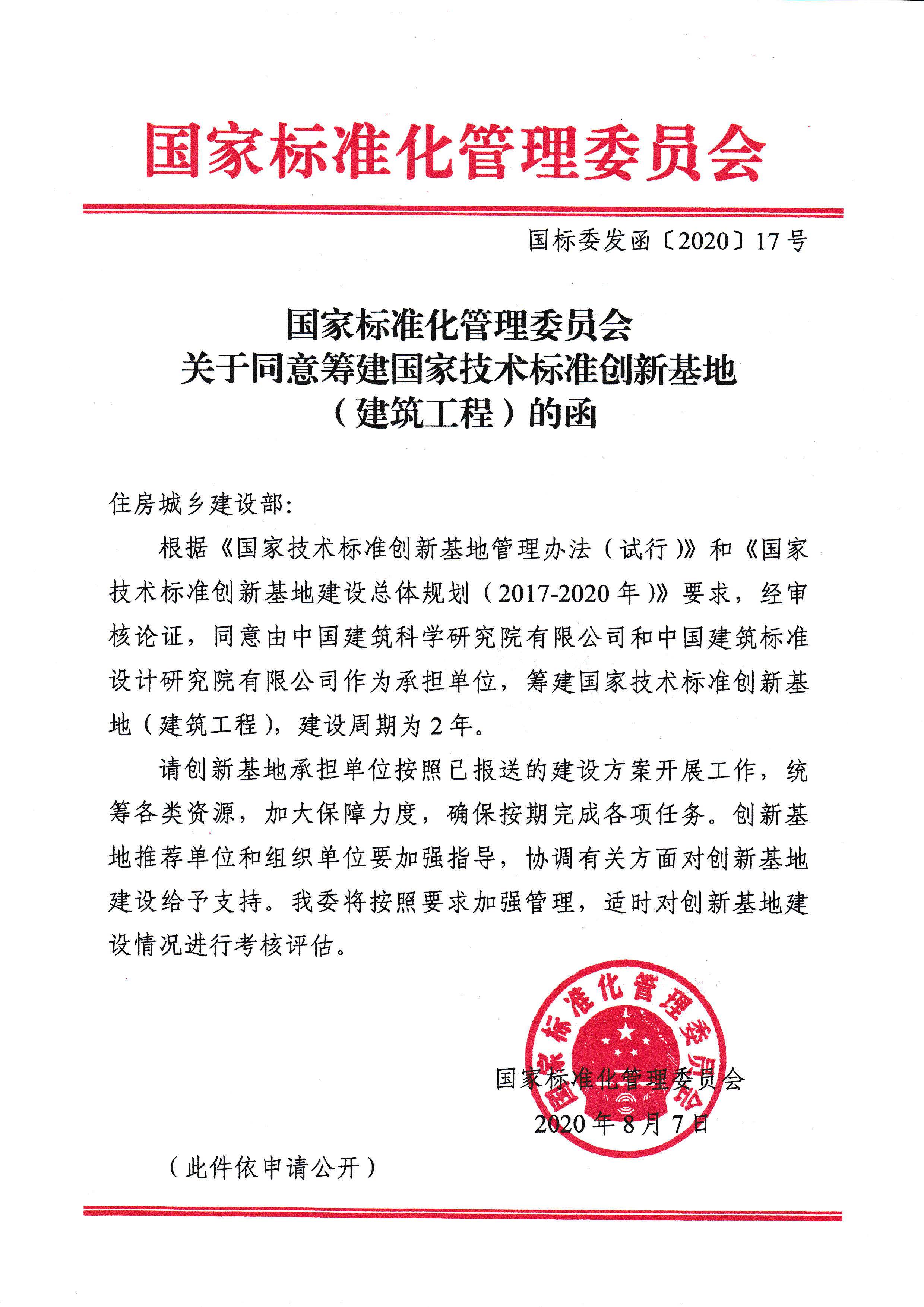 日前,國家標準化管理委員會復函批準,同意由公司協(xié)同有關單位籌建國家技術標準創(chuàng)新基地(建筑工程)。這是我國在城鄉(xiāng)建設領域首次獲得籌建國家級技術標準創(chuàng)新基地。